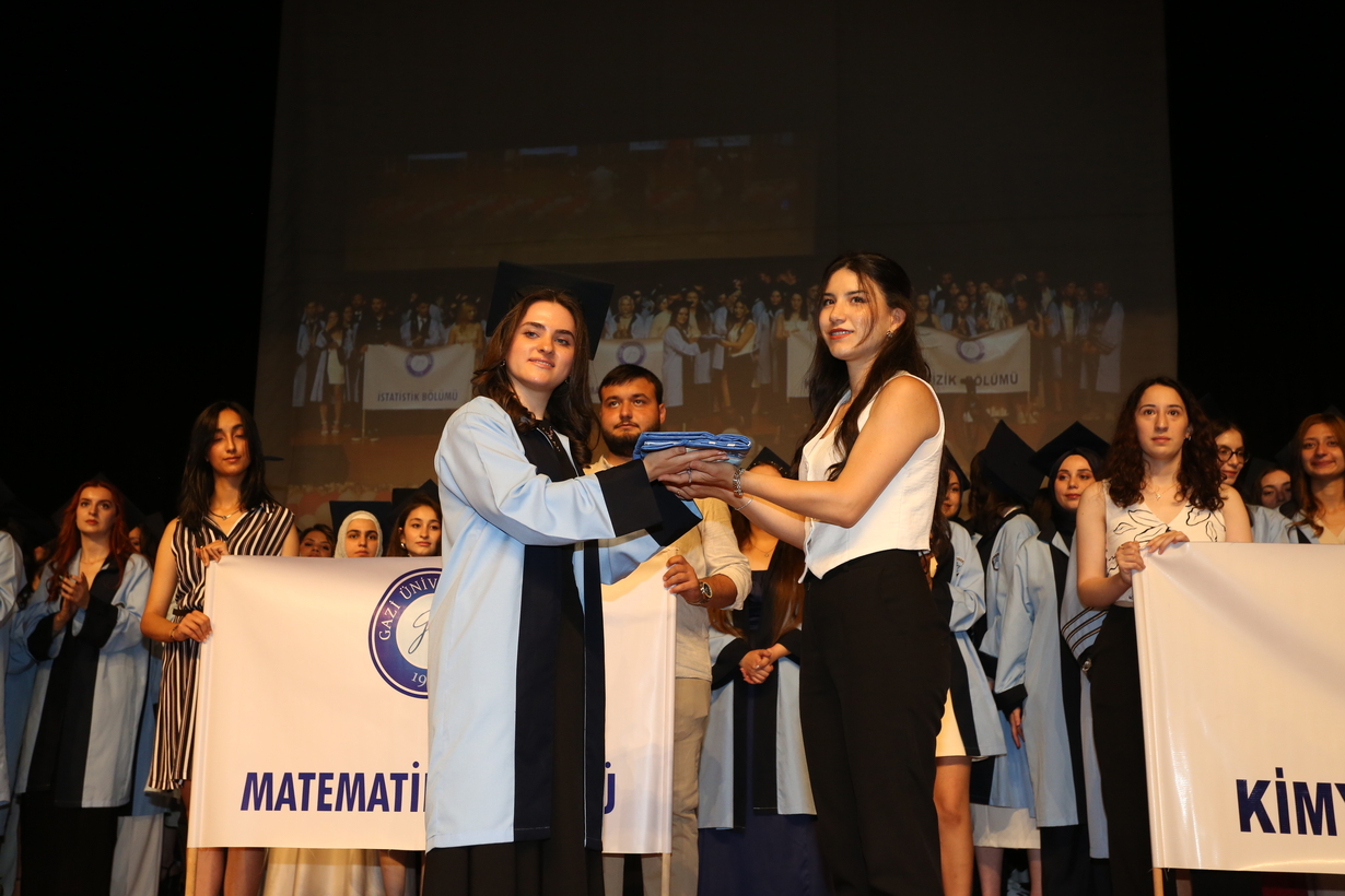 Rektörümüz Prof. Dr. Uğur Ünal ise öğrencilerimizin bugün mezuniyet aşamasına gelmelerinde en büyük görevi ve rolü üslenmiş olan, Üniversitemize ve Fakültemize adım attıkları ilk günden, mezun oldukları son güne kadar yetişmelerinde emekleri olan meslektaşlarına, Fen Fakültesinin değerli akademisyenlerine teşekkürlerini sunduğunu kaydetti. Prof. Dr. Uğur Ünal, “Gazi Üniversitesi Fen Fakültesi mezunu olmanızdan biz gurur duyuyoruz. Gazi Üniversitesi olarak bizler, sizlere destek vermeye gayret edeceğiz. Gazili olmak bir ayrıcalıktır, bu ayrıcalığınızı sürdürün ve gerek üniversitenizle gerek fakültenizle bağınız hep daim olsun. Mezuniyetinizi en kalbî duygularımla kutluyor, hepinizi saygı, sevgi ve muhabbetle selamlıyorum. Allah’a emanet olunuz, sağlıcakla kalınız” diyerek mezunlarımızı ve ailelerini tebrik etti.
